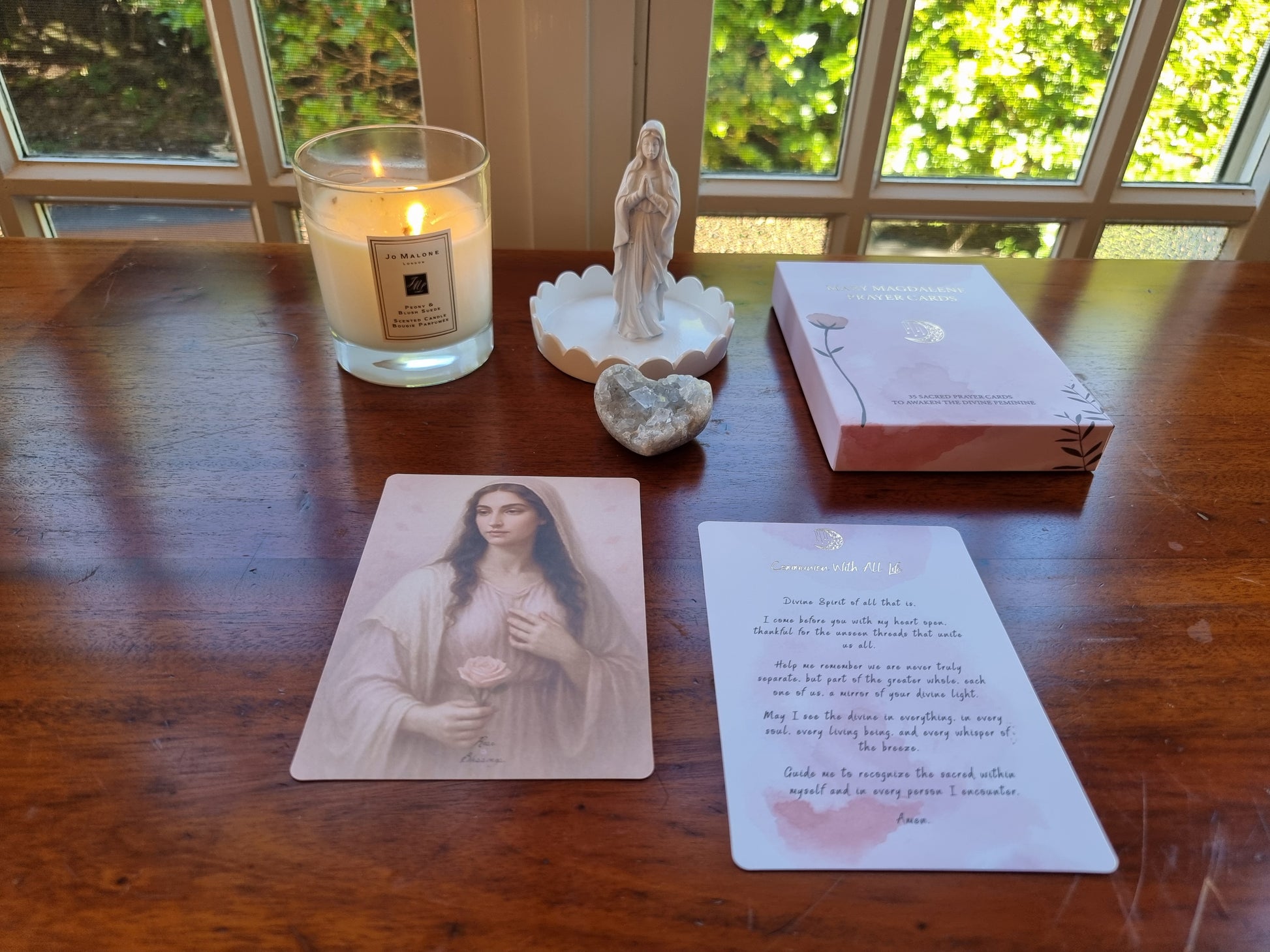 Awaken your spirit with the Mary Magdalene Prayer Cards—a luminous set of 35 cards inspired by the beloved Mary Magdalene Way A Sacred Prayer Journal. Each card carries a sacred message of hope, beauty, and spiritual truth, offering daily inspiration and guidance from the Divine Feminine.